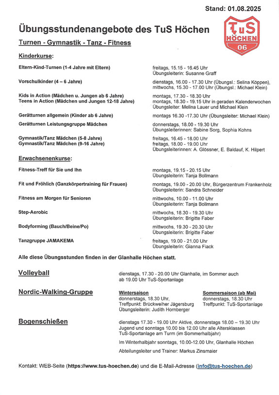 Wir freuen uns über Ihr Interesse am TuS Höchen und laden Sie ein, an unserem reichhaltigen sportlichen Angebot teilzuhaben. Informieren Sie sich auf diesen Seiten über die Möglichkeiten, etwas für Ihre eigene Fitness und Ihre Gesundheit oder die Ihrer Kinder zu tun. Die Freude am Sport steht dabei immer im Mittelpunkt.